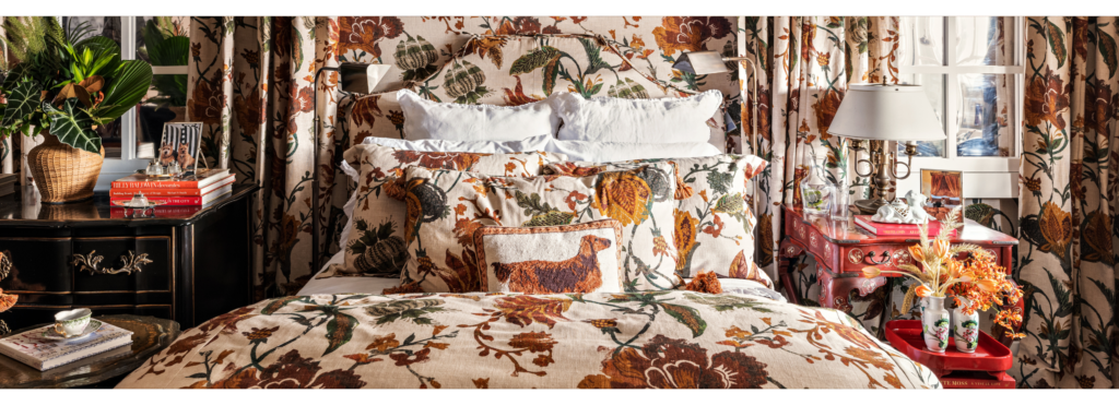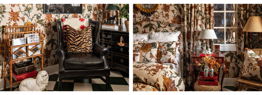 Acredito que o fato de o quarto ser todo forrado em tecidos em um só tecido e estampa, que “abraça” quem está nele. É aquele detalhe que você não apenas vê, mas sente e não sabe descrever.